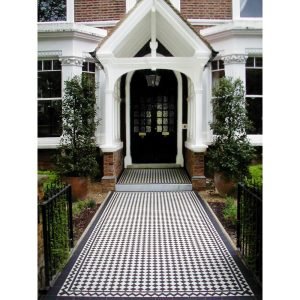Home / Victorian Tiles / Victorian Tile Patterns / Ennerdale Tile Pattern / Ennerdale 50mm / Ennerdale 50 Black and White / ennerdale-50-geometric-floor-tiles-Black and White pathway