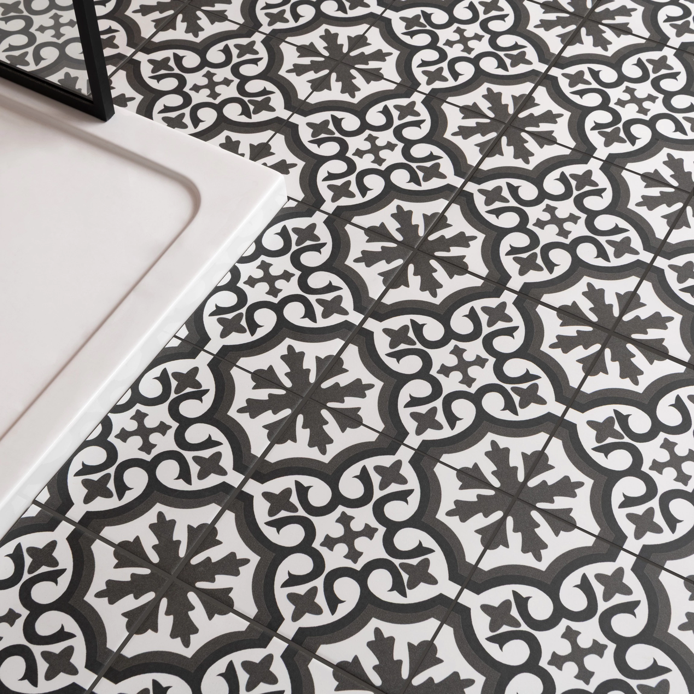Period tiles design that repeats across the floor. 450 x 450 tile .